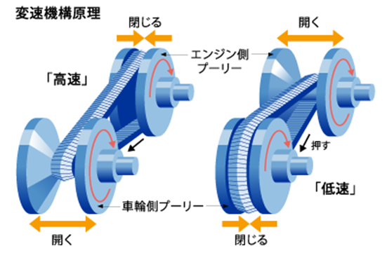 - CVT車は従来のAT車と比べスムーズに無変換での変速ができます。